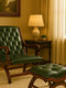 The VIRAASAT Chair with Footrest offers timeless elegance and exceptional comfort. Crafted with a durable wooden frame, finished in sleek black matt polish, and upholstered in premium leatheroid, this set adds a touch of luxury to any room.